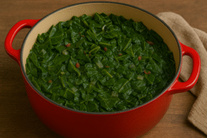 If you’ve spent any time in a Southern kitchen, you already know collard greens aren’t just a vegetable… they’re a whole experience. Traditionally, folks simmer them low and slow with ham hocks, a splash of vinegar, and a pinch of sugar to balance the bitterness.